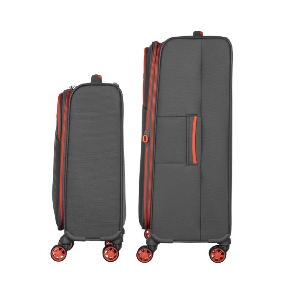 Завдяки особливостям конструкції об’єм моделі середнього розміру можна збільшити із 64 до 78 л. Зручність і безпеку продумано до дрібниць: обидві валізи оснащено тризначним TSA-замком, який гарантує надійний захист багажу та полегшує проходження митного контролю. Чотири подвійні колеса-спінери з обертанням на 360° забезпечують плавне пересування, а телескопічне алюмінієве руків’я можна фіксувати у трьох положеннях для зручності під час транспортування. На фронтальній поверхні розташовано зовнішню кишеню на блискавці для швидкого доступу до необхідних речей.