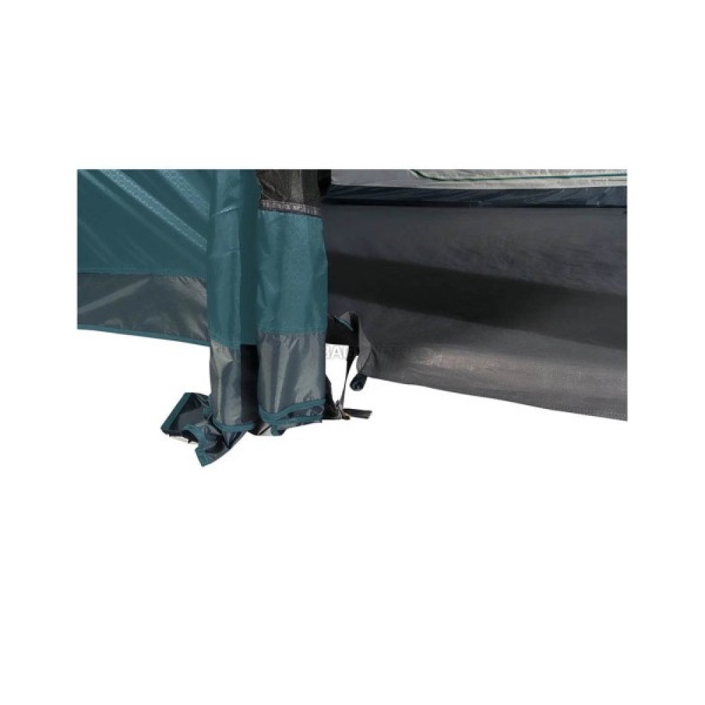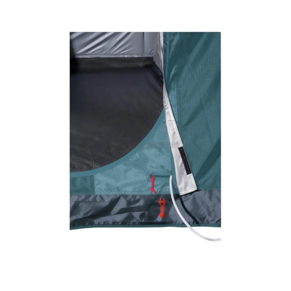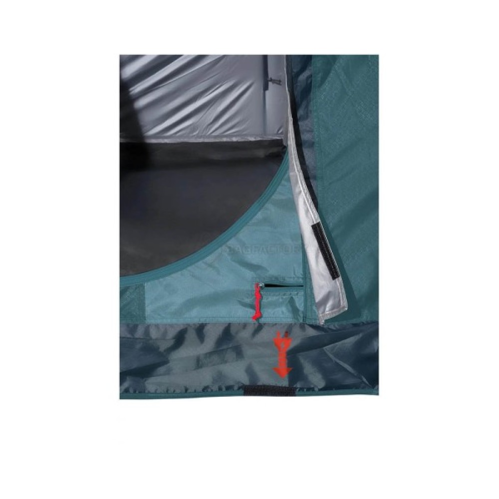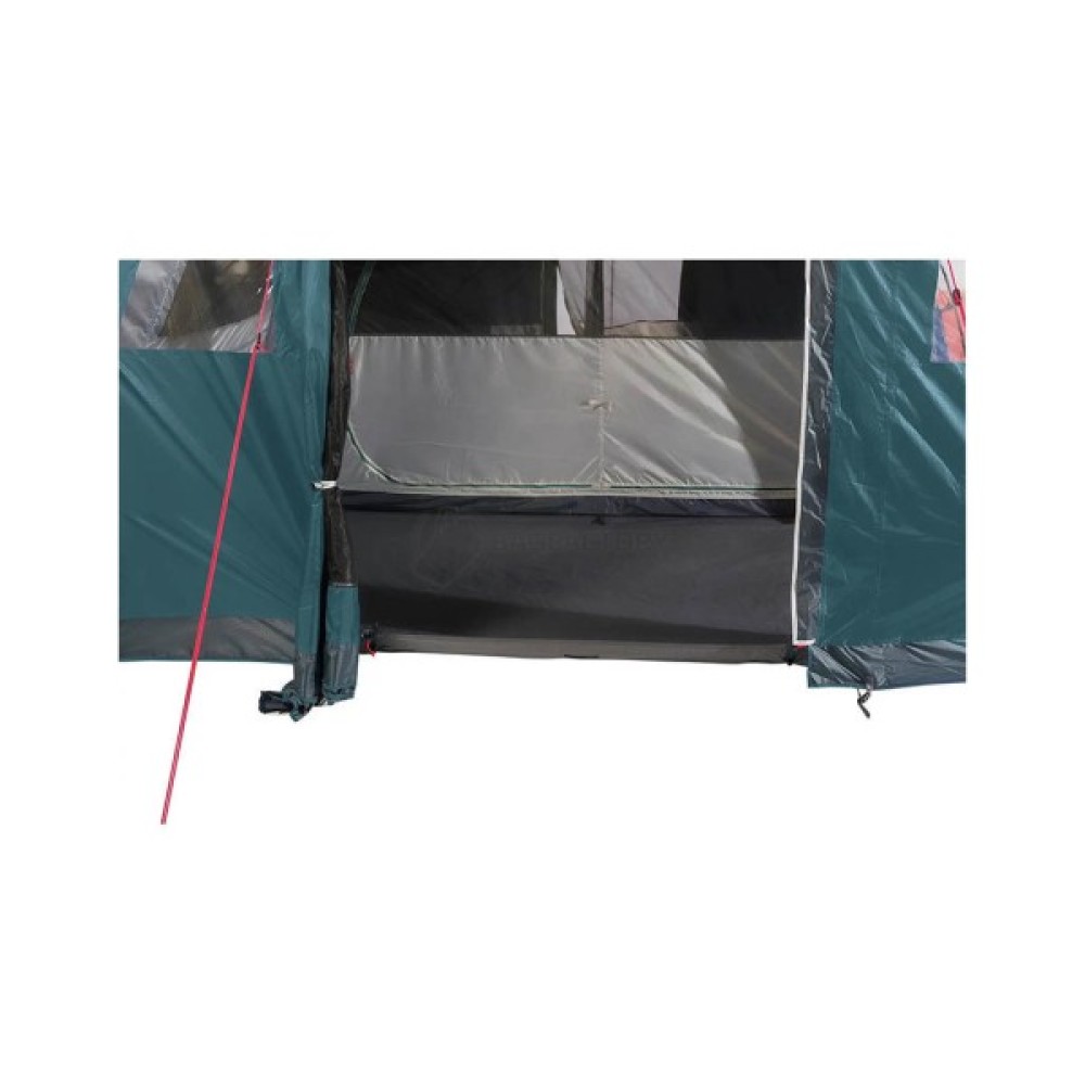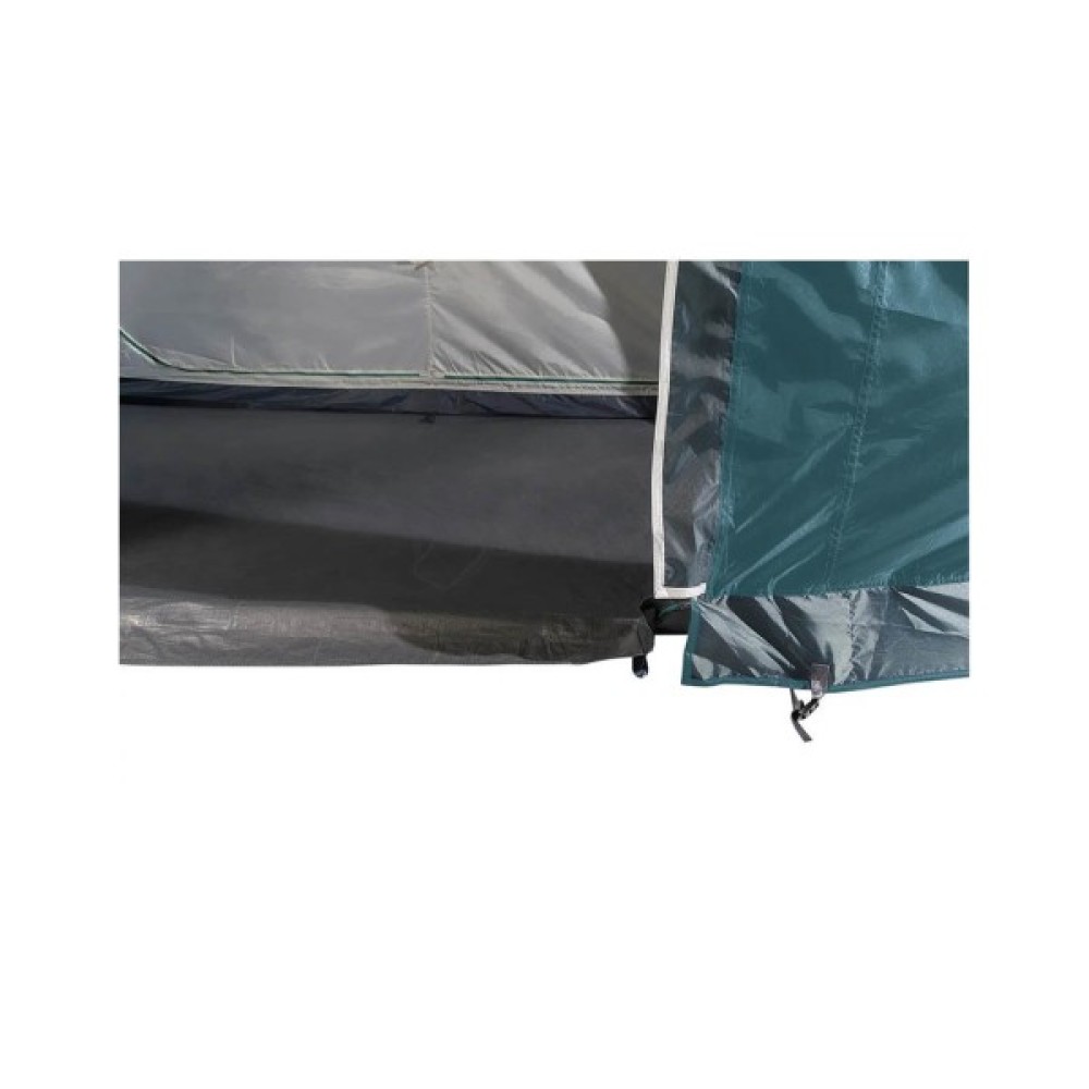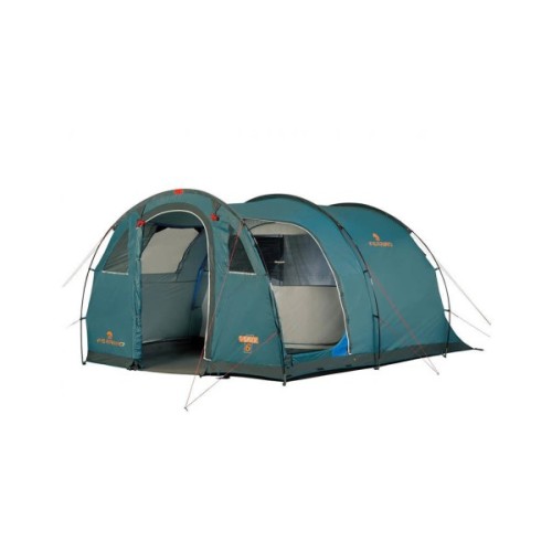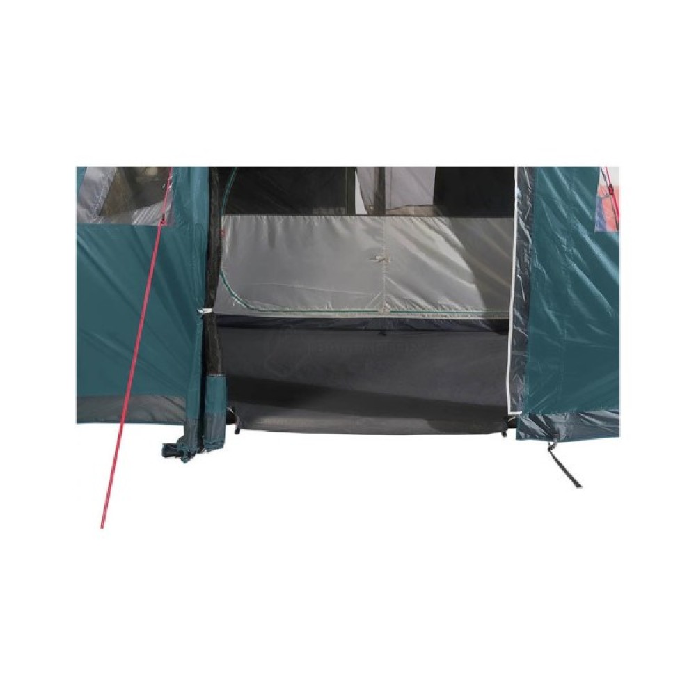 Ferrino Fenix ​​6 Petrol (91194MBB) - сімейний тунельний намет з трьома входами, просторим вестибюлем з вшитою підлогою та спальнею зі знімною перегородкою. Москітні сітки на вхідних дверях забезпечують захист від настирливих комах. Система вентиляції Air Ventilation System забезпечує постійну циркуляцію повітря, а також позбавляє утворення конденсату. Фронтальні вікна та панорамне бічне вікно наповнюють внутрішній простір світлом. Висота тамбуру 210 см дозволяє стояти на повний зріст. Особливості: Hydrostatic Head 2000 мм - тканина намету має термоізоляційне алюмінійоване поліуретанове покриття, що знижує підвищення температури всередині намету в сонячну погоду і забезпечує водонепроникність 2000 мм вод. ст.