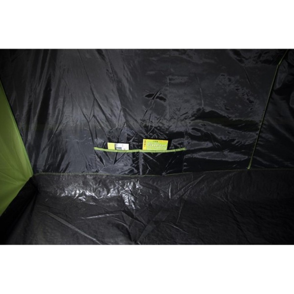 Вхід на блискавці дозволяє прокласти електрокабель всередину намету під час перебування в кемпінг-таборі. Міцні сталеві кілочки діаметром 5 мм призначені для твердого грунту. Проклеєні шви гарантують міцність на розрив і забезпечують водонепроникність.