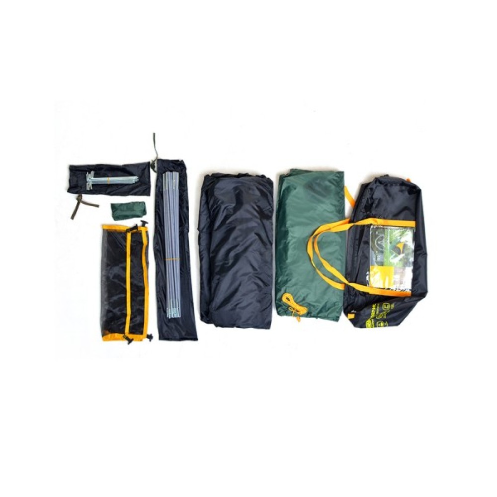 Особливості 2 дуги; ремонтний набір у комплекті; набір кілочків; 2 тамбура; в комплекті чохол; підвісна поличка; всі шви проклеєні