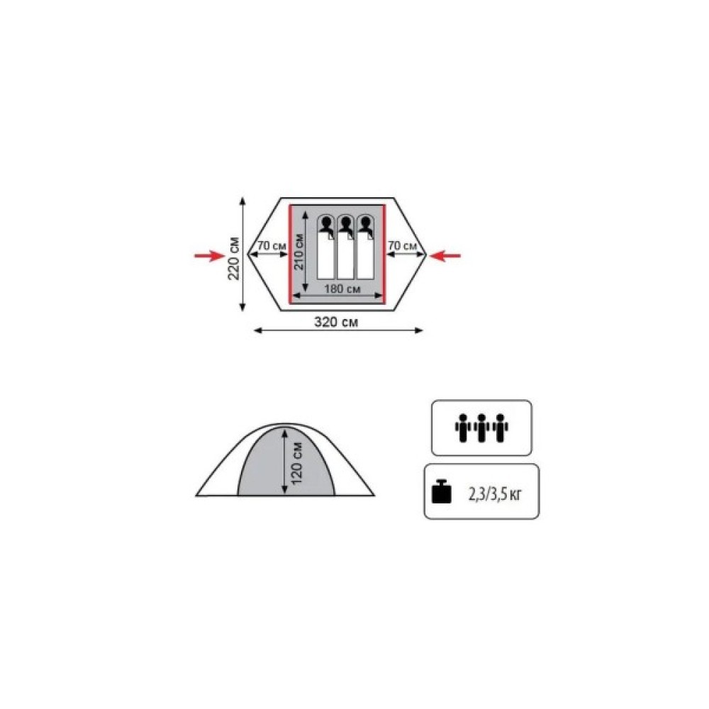 • Додаткова консольна дуга збільшує внутрішній об'єм намету, вітростійкість і розміри тамбурів