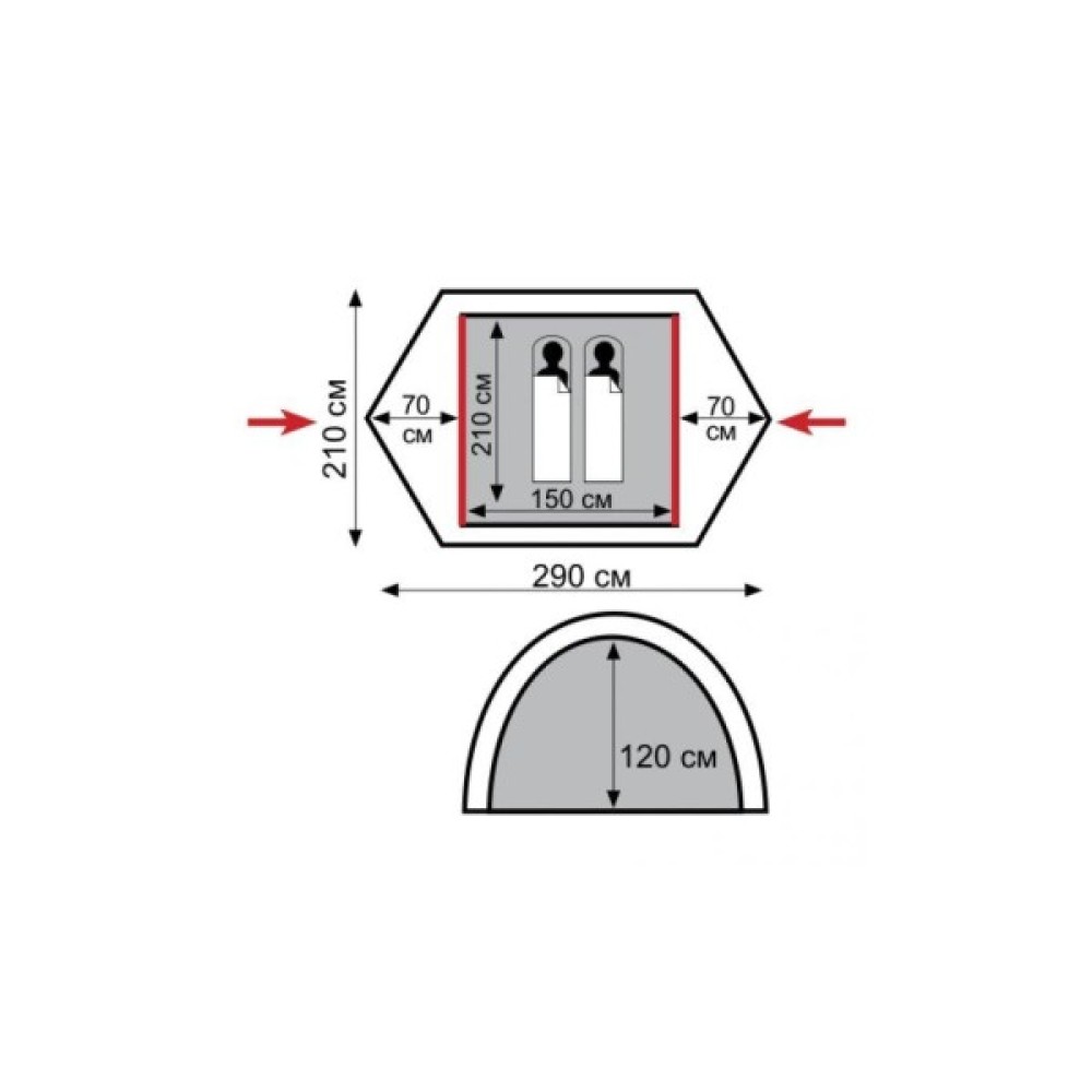 Особливості: - Вхід спального відділення продубльований москітною сіткою.- Легкий двошаровий намет з двома входами.- Зовнішній тент намету стійкий до ультрафіолетового випромінювання.- Зовнішній тент має просочення, що затримує поширення вогню.- Два вентиляційних клапана.- Всі шви проклеєні.- Кількість місць: 2. - Кількість входів: 2. - Матеріал каркаса: Durapol 8,5 мм - Матеріал дна: 100% поліестер 75D/190T 7000 мм у ст.- Матеріал тенту: 100% поліестер 75D/190T RipStop 5000 мм в ст. - Матеріал внутрішнього намету: 100% дихаючий поліестер. - Кілочки: Сталеві.