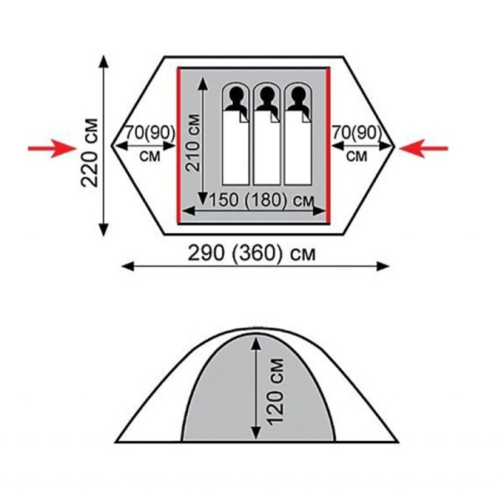 • Зовнішній тент намету стійкий до ультрафіолетового випромінювання