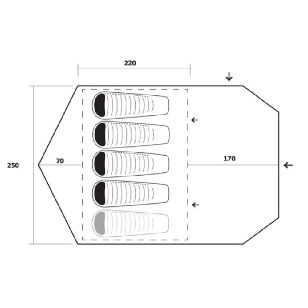 Просторий намет для 4-5 людей із великою варіабельністю входів і тамбуром великого розміру. Має легке та швидке монтування.