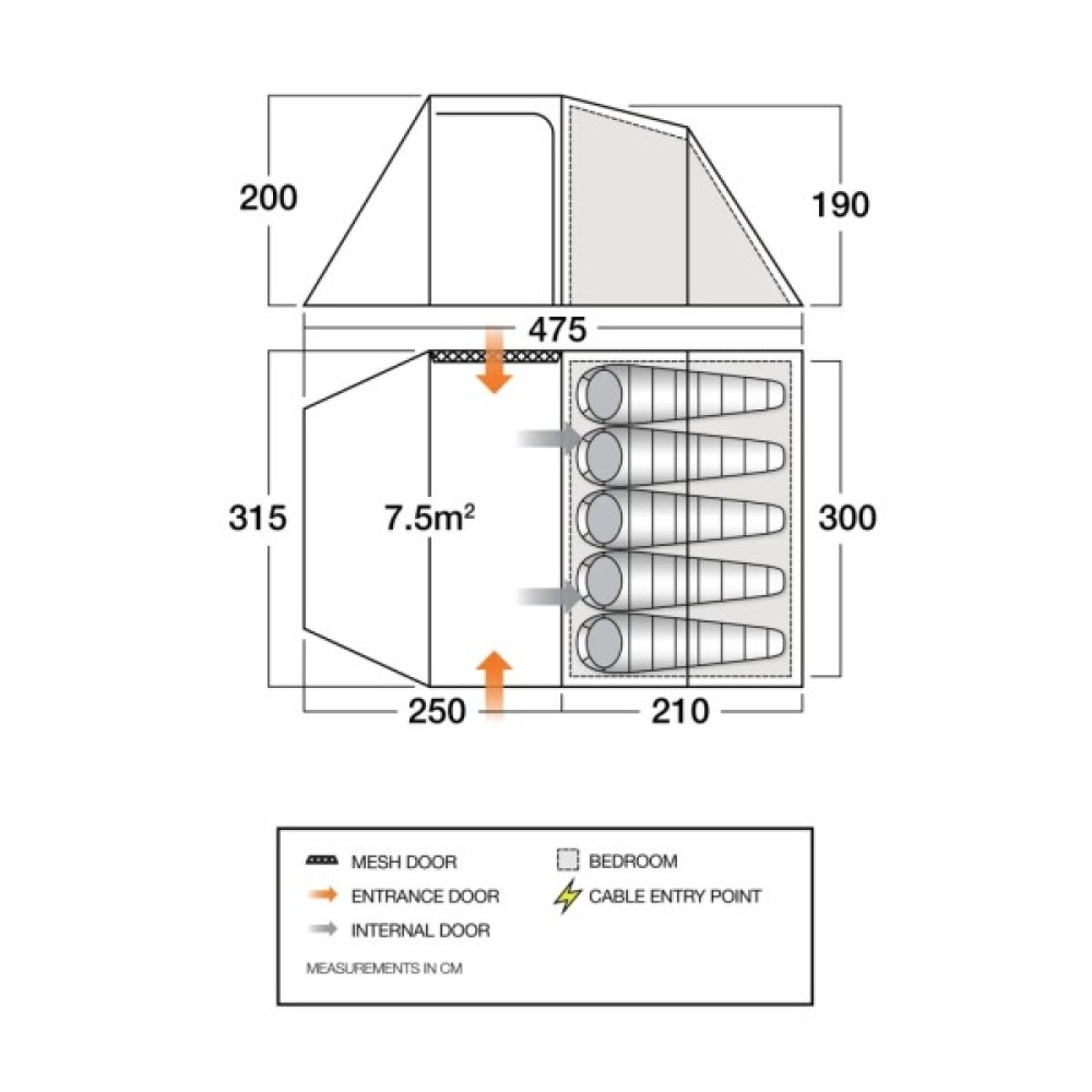 • Waterproof PE Groundsheet - Підлога з міцної тканини, яка витримає найактивніших туристів і створює чисте та сухе місце для зберігання взуття та похідного обладнання.
