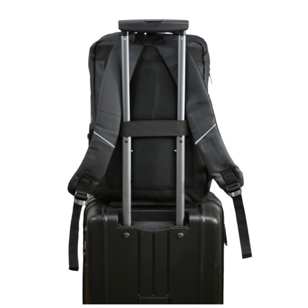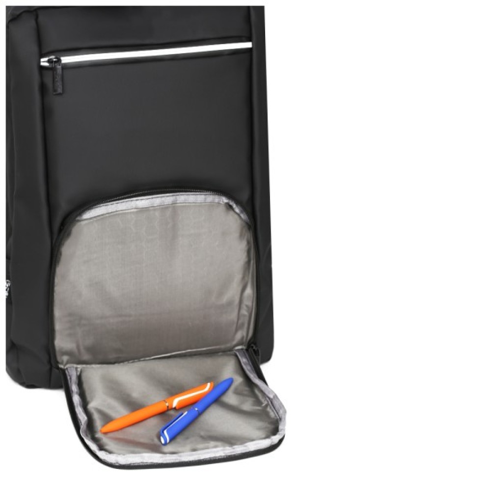 Рюкзак міський має продуману конструкцію: одне основне відділення на блискавці з м’яким відсіком для ноутбука та внутрішніми кишенями для гаманця, телефона та інших дрібниць. Зовнішні кишені на блискавках та зручна бічна кишеня для пляшки або парасолі. Вбудовані світловідбивальні елементи розміщені на лямках і верхній частині рюкзака для кращої видимості в темну пору.