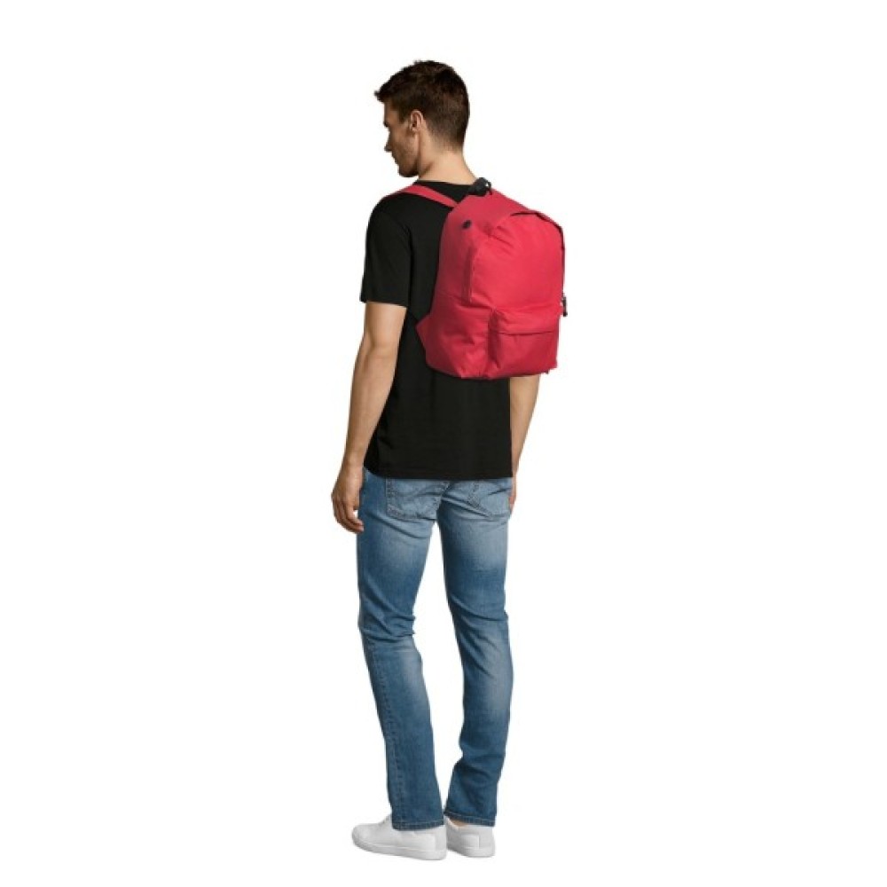 Стильний міський рюкзак SOL'S Rider. Має велике центральне відділення з застібкою-блискавкою з подвійним замком та передню кишеню на блискавці. Додатково збоку є отвір для гарнітури. Посилені регульовані лямки та спинка з м'яким набиванням; зручна ручка для транспортування. Матеріал: 100% поліестер 600D. Розмір рюкзаку: 28 x 40 x 14 см. Об'єм: 15,7 л. Модель сертифікована: PETA Approved Vegan Аналогічні моделі: Дитяча модель: SOL'S Rider kids - арт. 70101. Догляд та прання: 30 С° без відбілювачів на ручному режимі в машинці або вручну.