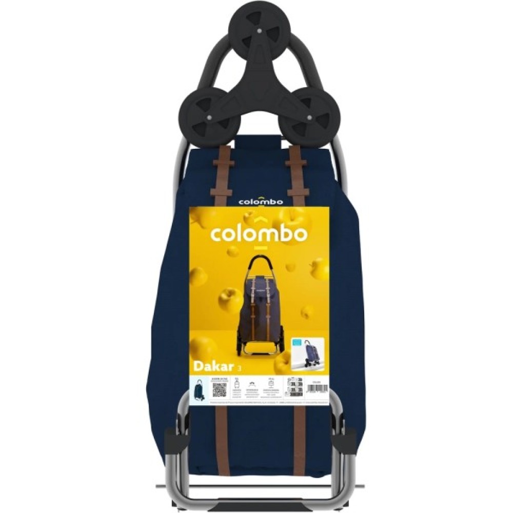 Сумка-візок Colombo Dakar 3 (CRL005) виготовлена з високоякісних матеріалів та має стильний дизайн. Особливістю даної моделі є шість литих ультралегких коліс, які сприяють підйому будь-якими сходами. Під час руху рівною поверхнею участь беруть чотири колеса, при цьому вага рівномірно розподіляється по шасі та не навантажує спину. Посилена рама оброблена порошковою фарбою для захисту від корозії, легка та водночас міцна, здатна перевозити вантажі до тридцяти кілограмів. Зона для тримання візка прогумована для комфортного використання в холодну пору року. Зручне зберігання та переміщення сумки-візка забезпечується складаною основою та знімними колесами.