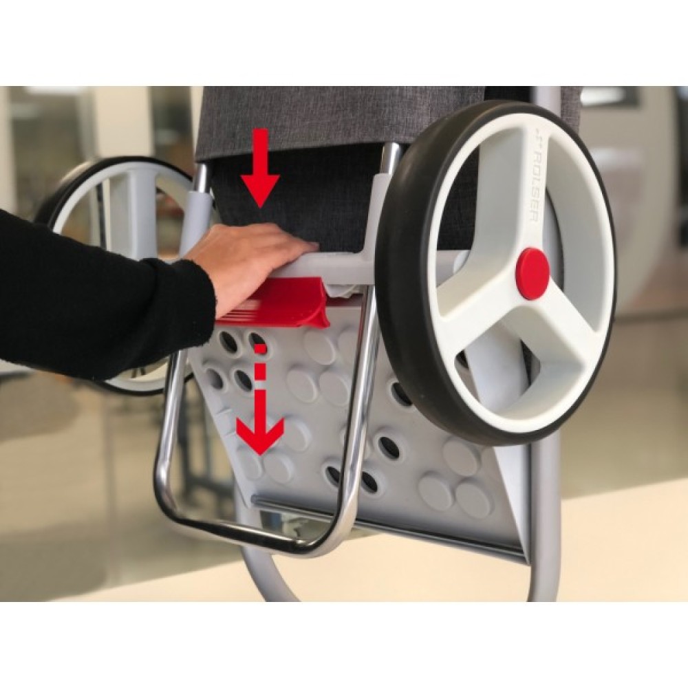 • Рама візка виготовлена з чорного анодованого алюмінію, що дозволяє транспортувати вантаж вагою до 50 кг.