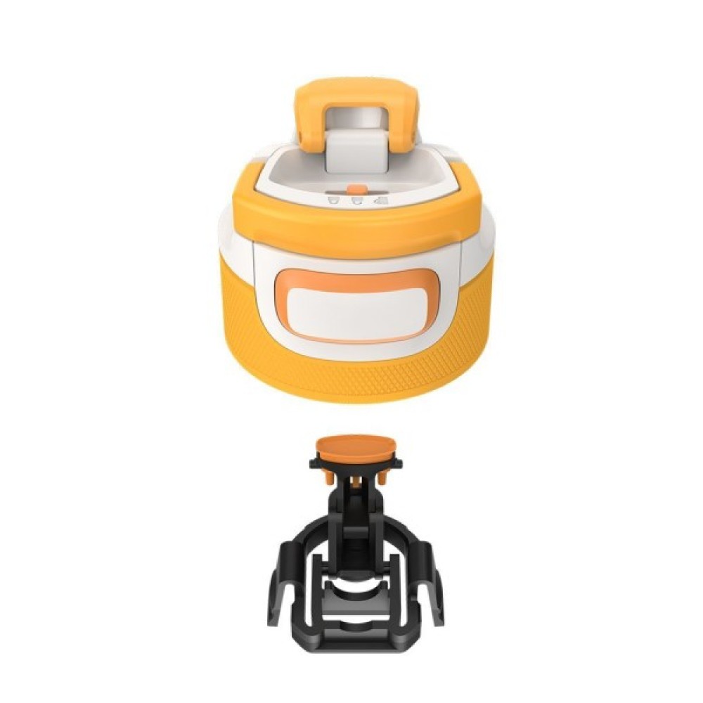 Силіконова манжета на корпусі запобігає вислизанню з рук, а прогумоване дно забезпечує відмінну стійкість на будь-яких поверхнях. Термопляшку можна переносити, користуючись складною ручкою.
