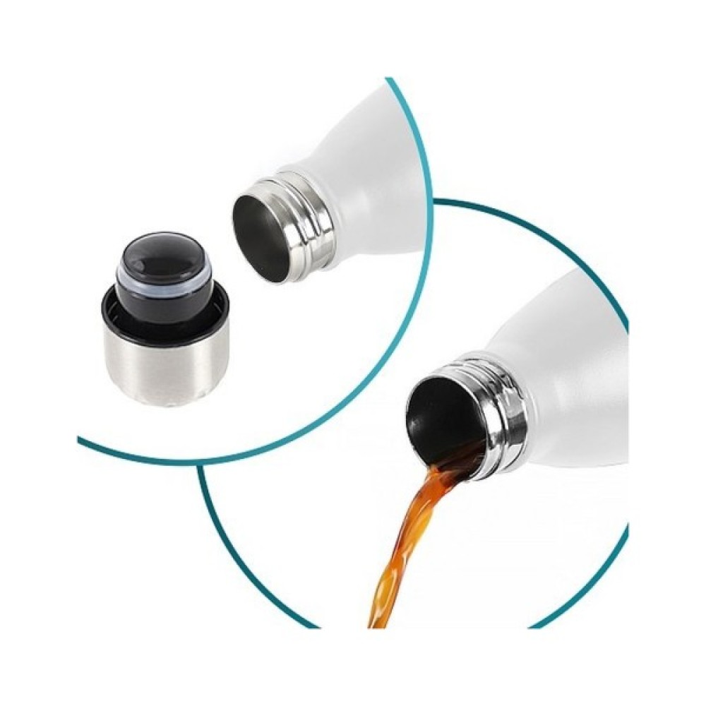 • Має двохстінну конструкцію і кришку з ущільнювачами, завдяки чому дозволяє зберігати температуру гарячої рідини протягом 12 годин і холодної - протягом 24 годин .