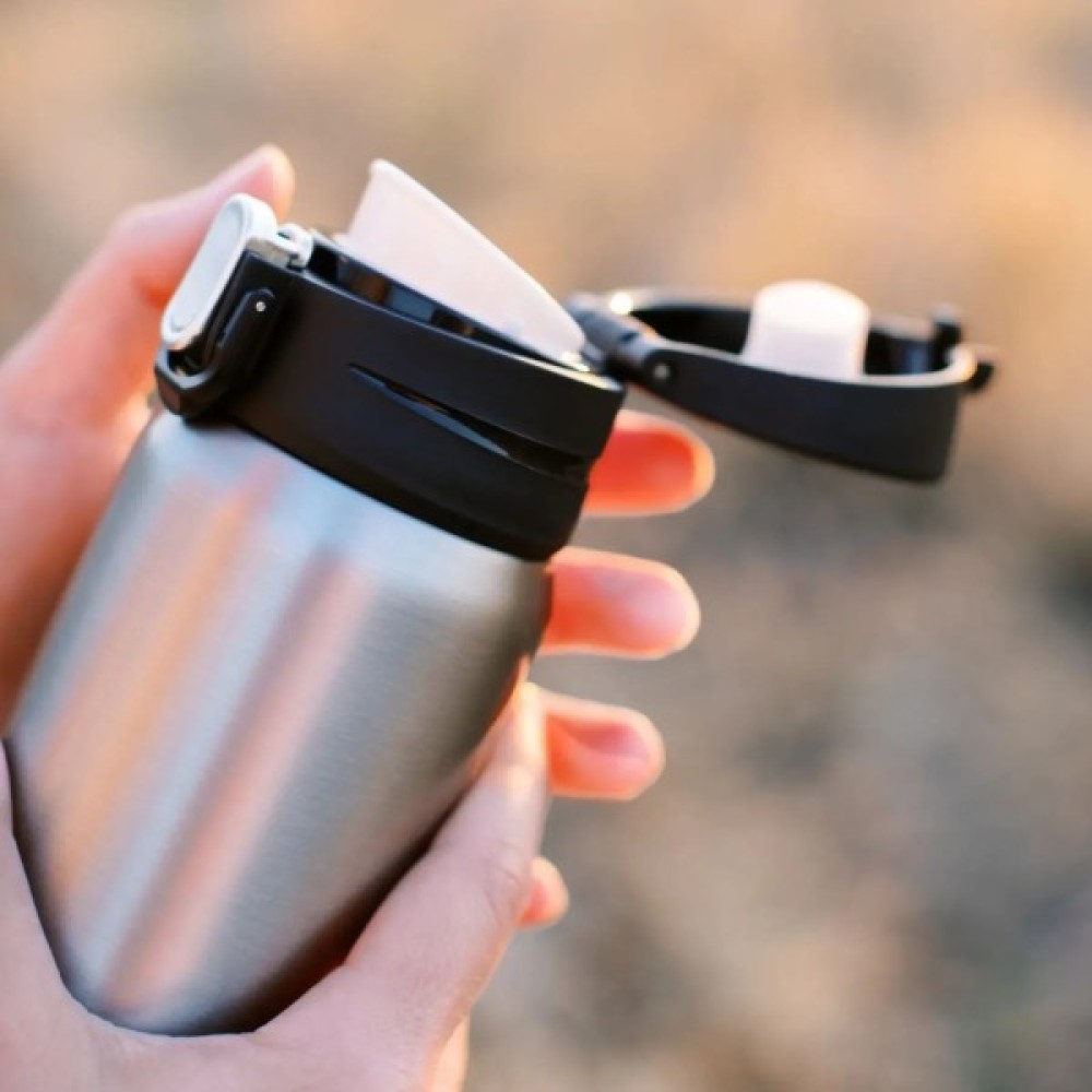 Tribe Motion 0,45 л це компактна та легка термокружка з харчової нержавіючої сталі SUS 304, створена для щоденного використання в місті, під час подорожей та у автомобілі: вона зручно вміщується в рюкзак, сумку чи підсклянник авто, а широкий отвір горловини дозволяє додавати кубики льоду у спеку. Кришка з одним рухом руки відкривається для пиття, оснащена фіксатором, який запобігає випадковому розливанню, а розбірний клапан полегшує догляд та миття. Для додаткового захисту корпусу можна використовувати .
