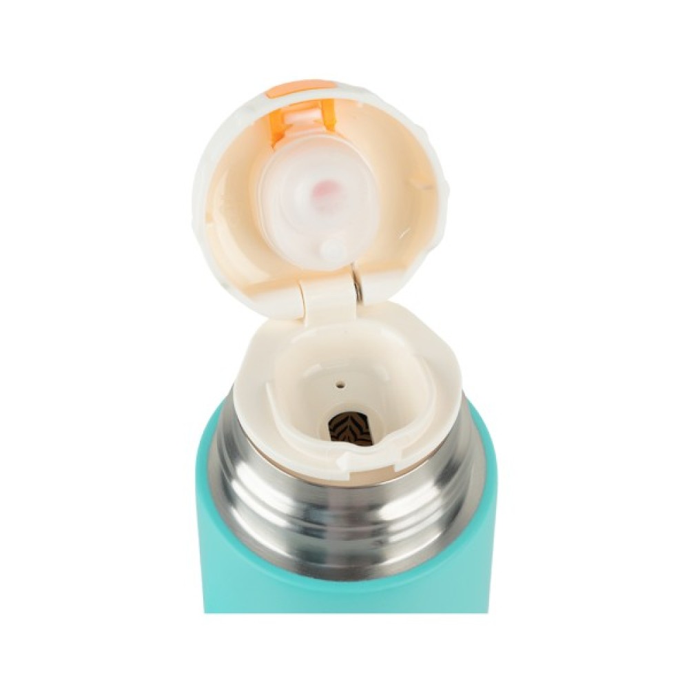 Особлива увага приділена дизайну: яскравий бірюзовий колір і сучасний дитячий стиль роблять термос стильним аксесуаром, який чудово вписується в будь-який рюкзак або сумку. Завдяки кришці-напувалці і гуменій ручці, користування термосом стає ще більш зручним – пити можна напряму, без використання додаткової чашки, що особливо актуально в дорозі чи на прогулянці.
