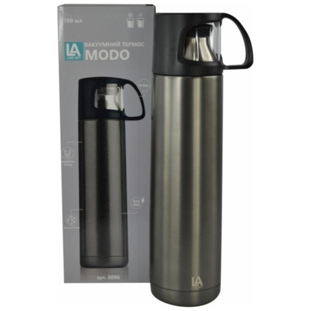 Термос Line Art Modo 700 мл графітовий (8086LA-11) — це ідеальне поєднання сучасного дизайну та функціональності, що стане незамінним аксесуаром для будь-якої подорожі чи повсякденного використання. Цей вакуумний термос для напоїв виготовлений з матеріалів найвищої якості, зокрема нержавіючої сталі та харчового пластику, який не містить BPA, що робить його безпечним у використанні. Завдяки цьому, ніякі шкідливі речовини не виділяються під час контакту з рідинами, зберігаючи напої в максимально природному стані.