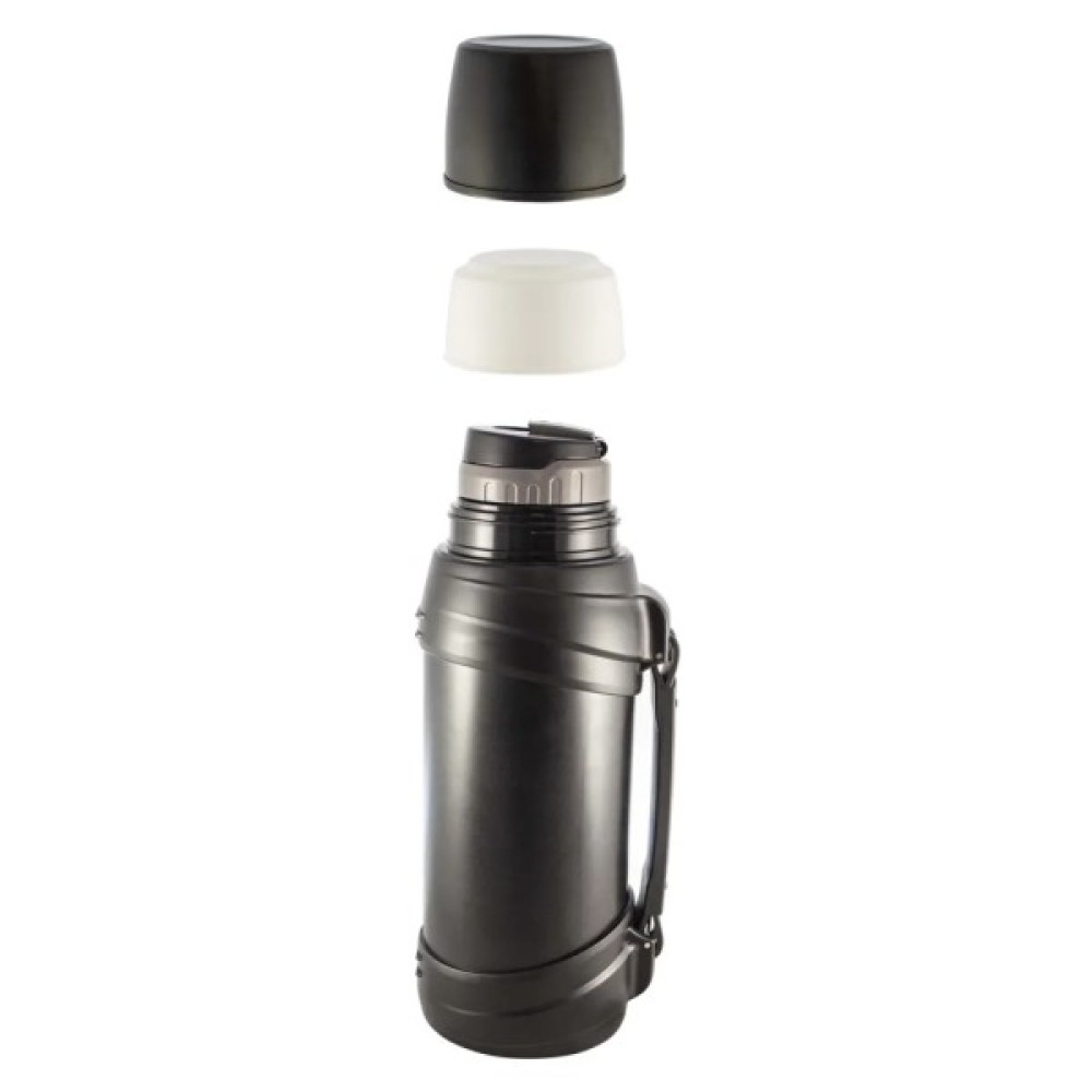 Термос оснащений прогумованою ручкою, що забезпечує зручність при транспортуванні, та знімним ремінцем-подовжувачем, який дозволяє легко носити виріб з собою, звільнивши руки для інших важливих справ. Варто зазначити, що аксесуари, які йдуть в комплекті, додають додаткового комфорту при користуванні термосом. Він оснащений двома чашками: однією пластиковою та повнорозмірною кришкою з нержавіючої сталі, яка також виконує роль чашки.