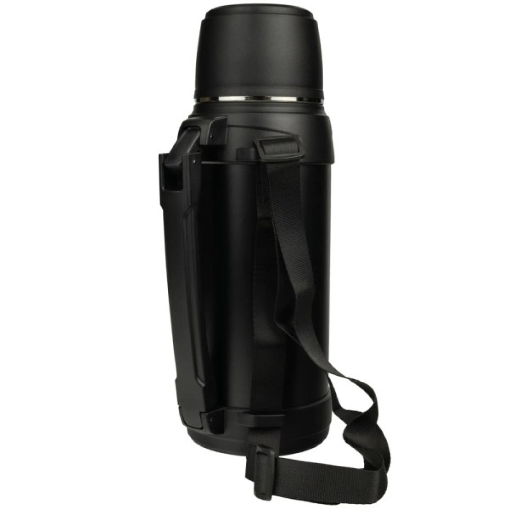 Для зручного транспортування термос оснащено міцною ручкою і додатковим ремінцем, що дозволяє легко переносити його на плечі, звільняючи руки. Особливістю є також наявність ніжок для безпечного зберігання в горизонтальному положенні – термос не котитиметься по поверхні, що особливо актуально під час руху.