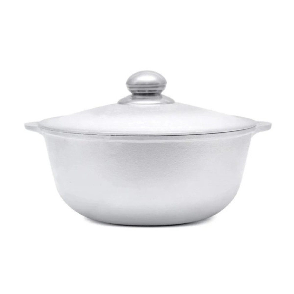 Казан універсальний, Алюмінієвий казан Brizoll можна використовувати як на відкритому вогні, так і в домашніх умовах, наприклад, на домашній плиті, Крім того, завдяки алюмінію, з якого виготовлений казан, цей похідний предмет має невелику вагу, тому його нескладно переносити навіть на далекі відстані, Модель алюмінієвого казана досить практична, Котел має ергономічну форму, широке дно і злегка сферичну форму стінок, Усе це робить казан зручним у використанні, оскільки у короткий термін страва готується з усіх боків, буде соковита та збереже корисні властивості, Також у комплектації до казана є кришка та металева дужка для зручності, прикріплена до литих ручок, Завдяки цьому казан легко розміститься на тринозі, та його зручно переносити,