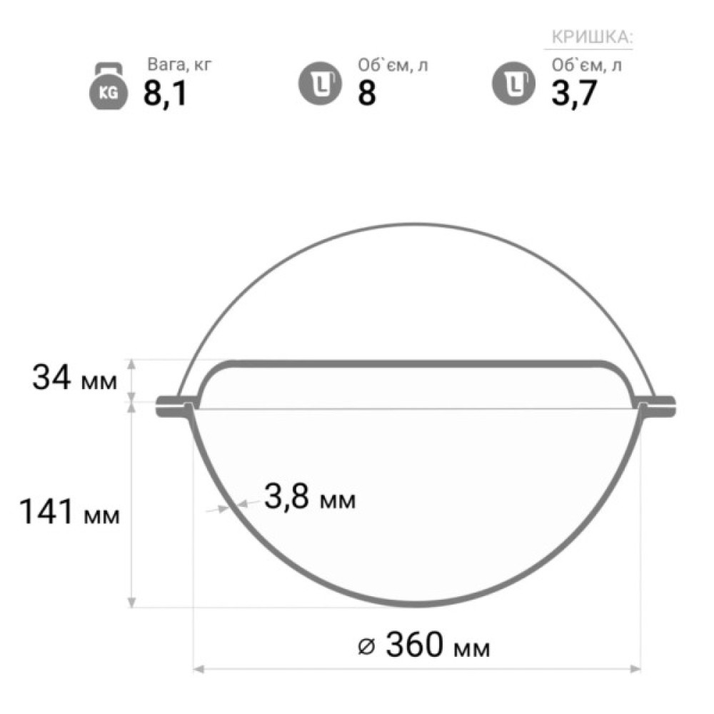 Модель: чавунний азіатський з кришкою-сковородою 8 л