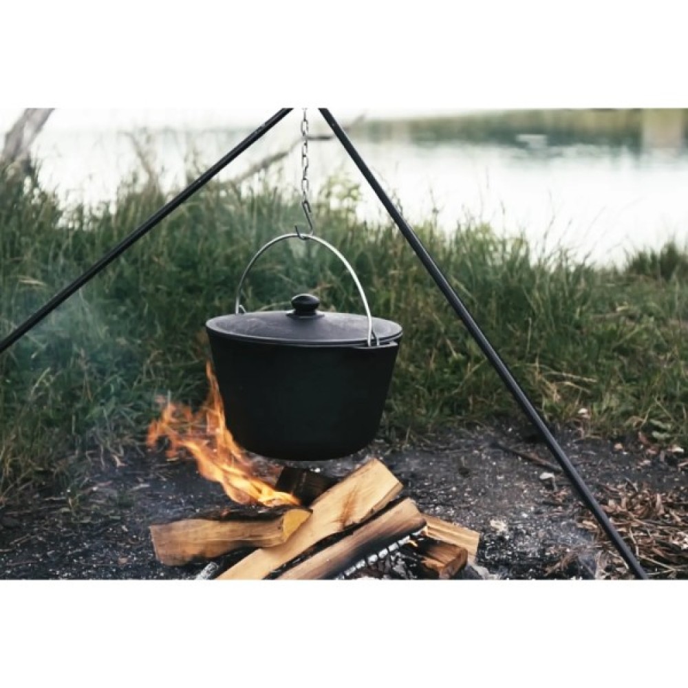 Чавунний казан з серії «ТУРИЗМ» – це перш за все класичний посуд для готування на відкритому вогні, Вилазка в ліс, до річки, посиденьки біля вогнища ніяк не обійдуться без цього атрибуту, Адже їжа, приготована на природі, – ще те задоволення, М’ясо, плов, уха, каша, риба, приготовані в казані з чавуну, по-особливому смачні, соковиті і мають просто неймовірний насичений аромат.