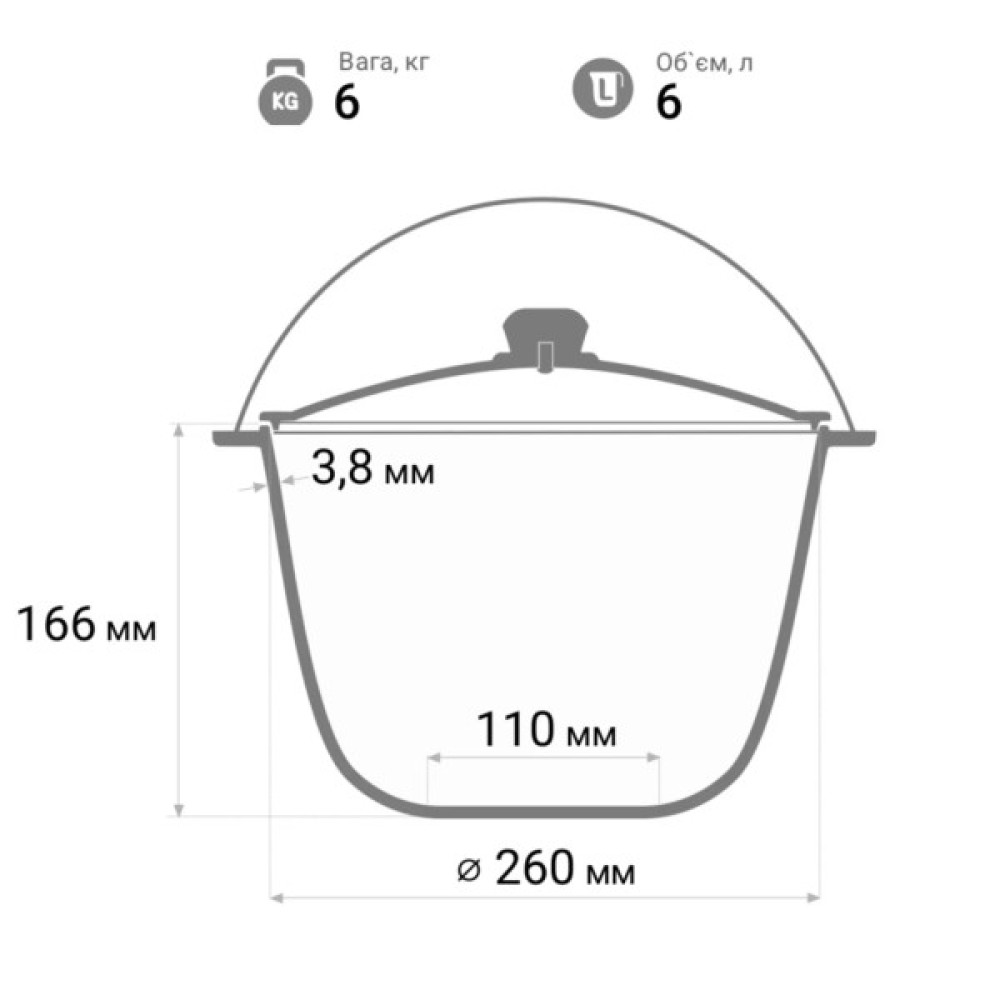 Котел, туристичний, Brizoll, чавунний, з, кришкою, 6, л, KT061