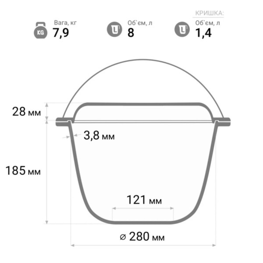 чавунний з кришкою-сковородою 8 л