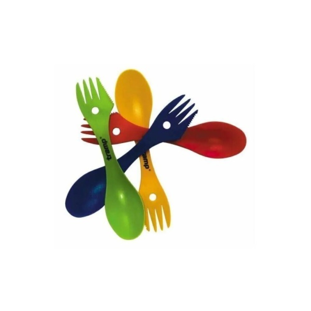 Пластмасова ложка-виделка Tramp TRC-069 - столовий прилад, що поєднує в собі ложку, вилку та ніж. Виготовлений із якісної харчової пластмаси. Ультралегка вага – всього 8 грам. Займає дуже мало місця в поході на рюкзаку або сумці, легко і просто миється.