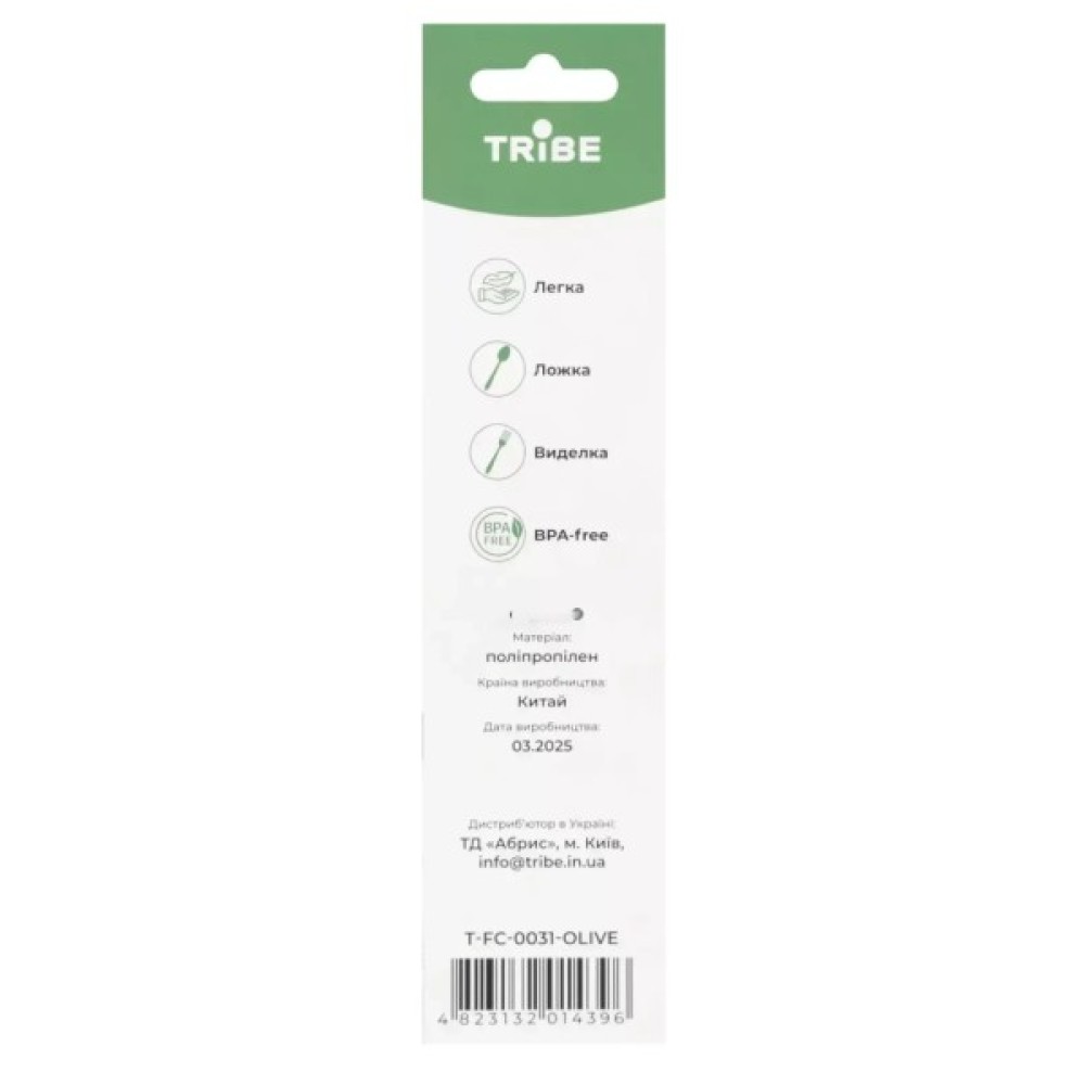 Ложкавиделка, туристична, Tribe, Spork, пластикова, olive, TFC0031olive