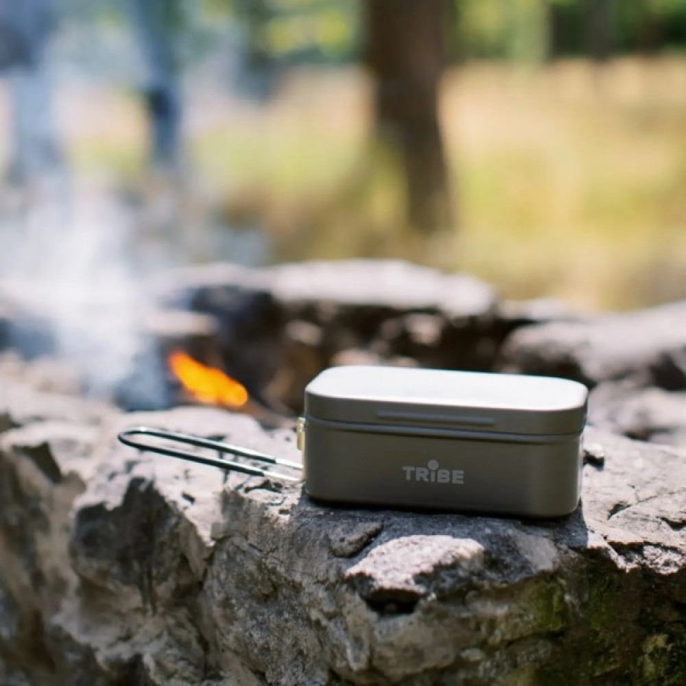 Tribe Lunch Box Alu це легкий контейнер з анодованого алюмінію об’ємом 500 мл, який одночасно виконує роль ланчбокса та похідного котелка: рівне дно швидко прогрівається на пальнику чи плиті, герметична кришка запобігає проливанню, а складна ручка з термостійким покриттям забезпечує безпечне знімання з вогню та компактне пакування. Анодування 5052 підвищує стійкість до корозії й подряпин, тому Lunch Box довго зберігає презентабельний вигляд навіть за інтенсивного щоденного використання у місті, походах або на роботі.