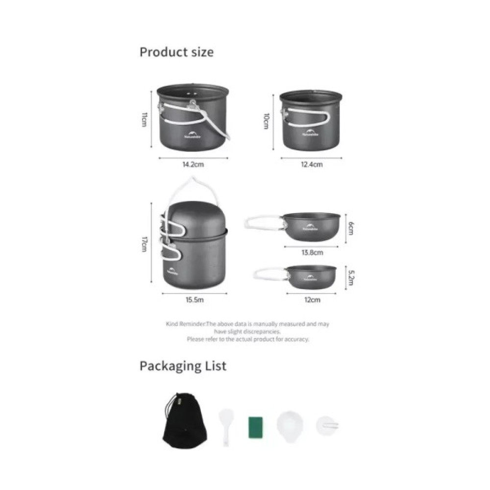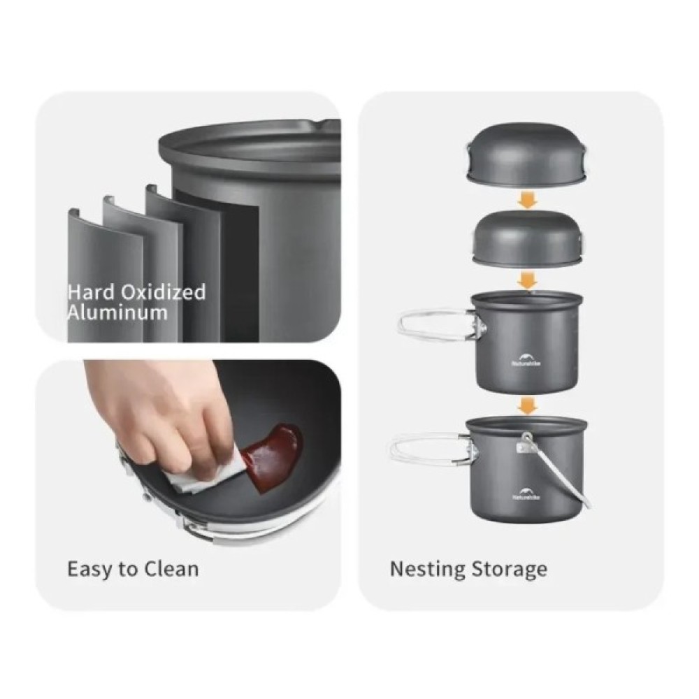 Набір, туристичного, посуду, Naturehike, NH18T018G, алюміній, 2, каструлі, 2, кришки, 6927595785515