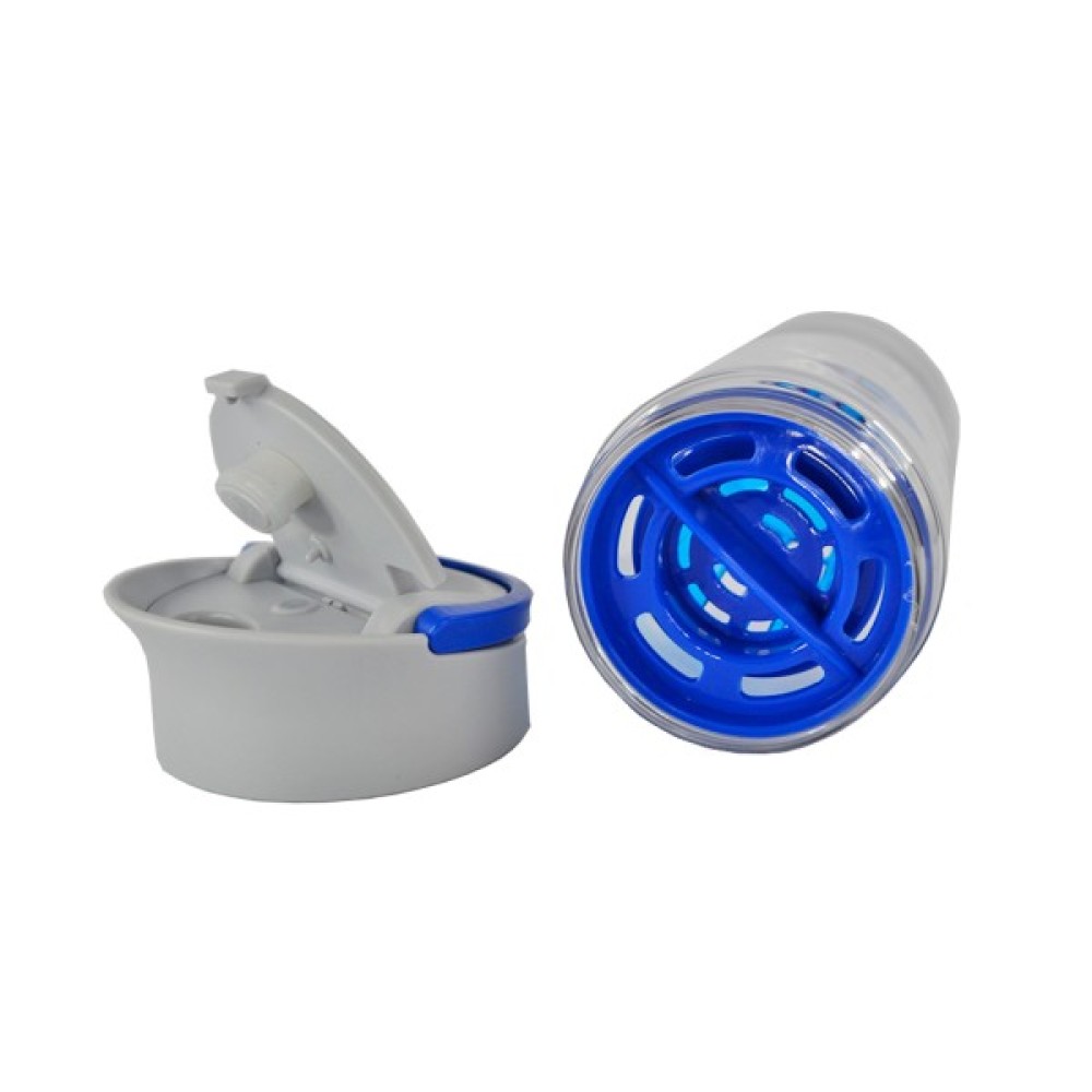 Для виготовлення пляшки використали тритан та поліпропілен. Тритан – міцний, ударостійкий і прозорий матеріал, що не вступає в реакцію з рідинами. Тритан схожий на скло, але він не розбивається при падінні та стійко реагує на гарячу воду.
