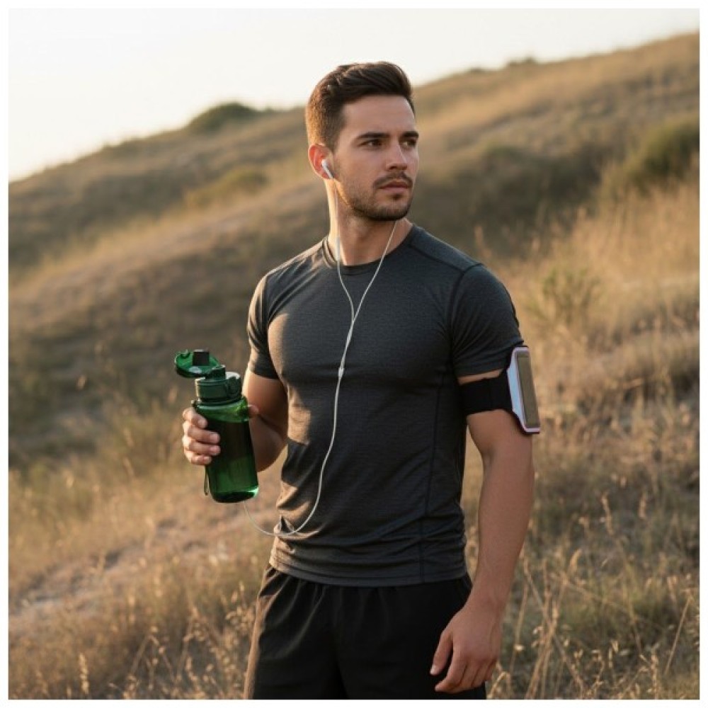 Кришка оснащена кнопкою з фіксатором та пружиною, що запобігає випадковому відкриванню та забезпечує надійний захист від протікання. Пластиковий носик для пиття з відкидною захисною кришкою забезпечує гігієнічність та зручність під час використання у спортзалі, офісі чи на вулиці. Вставки на боках кришки забезпечують комфортне відкривання навіть мокрими руками. Завдяки широкому горлечку пляшка легко миється та швидко наповнюється.