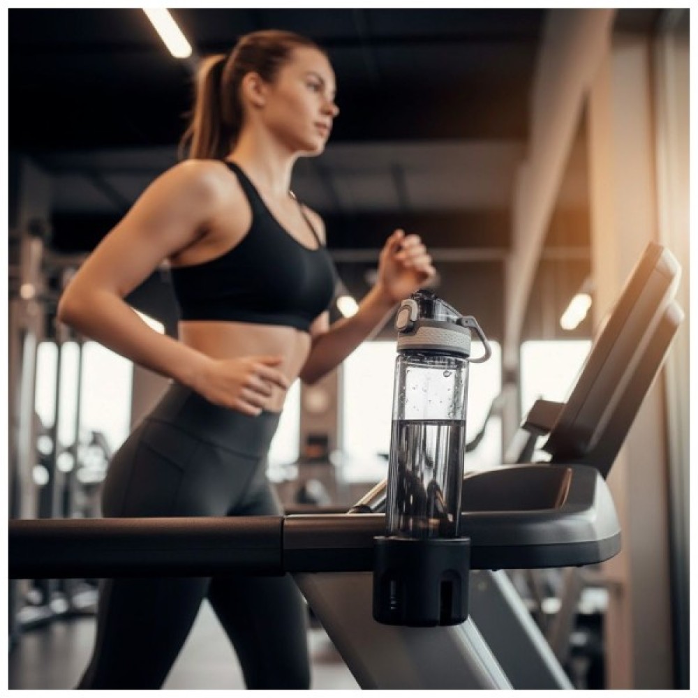 Кришка оснащена кнопкою з фіксатором, що запобігає випадковому відкриванню та забезпечує захист. Має ручку-карабін. Пластиковий носик для пиття з відкидною захисною кришкою забезпечує гігієнічність та зручність під час використання. TPR-вставки на боках кришки забезпечують надійне утримання та комфортне відкривання навіть мокрими руками. Завдяки широкому горлечку пляшка легко миється та швидко наповнюється.
