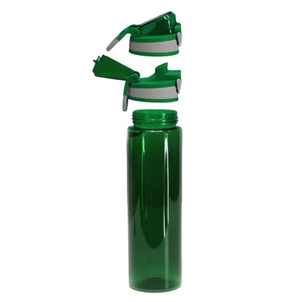 Кришка оснащена кнопкою з фіксатором, що запобігає випадковому відкриванню та забезпечує захист. Має ручку-карабін. Пластиковий носик для пиття з відкидною захисною кришкою забезпечує гігієнічність та зручність під час використання. TPR-вставки на боках кришки забезпечують надійне утримання та комфортне відкривання навіть мокрими руками. Завдяки широкому горлечку пляшка легко миється та швидко наповнюється.