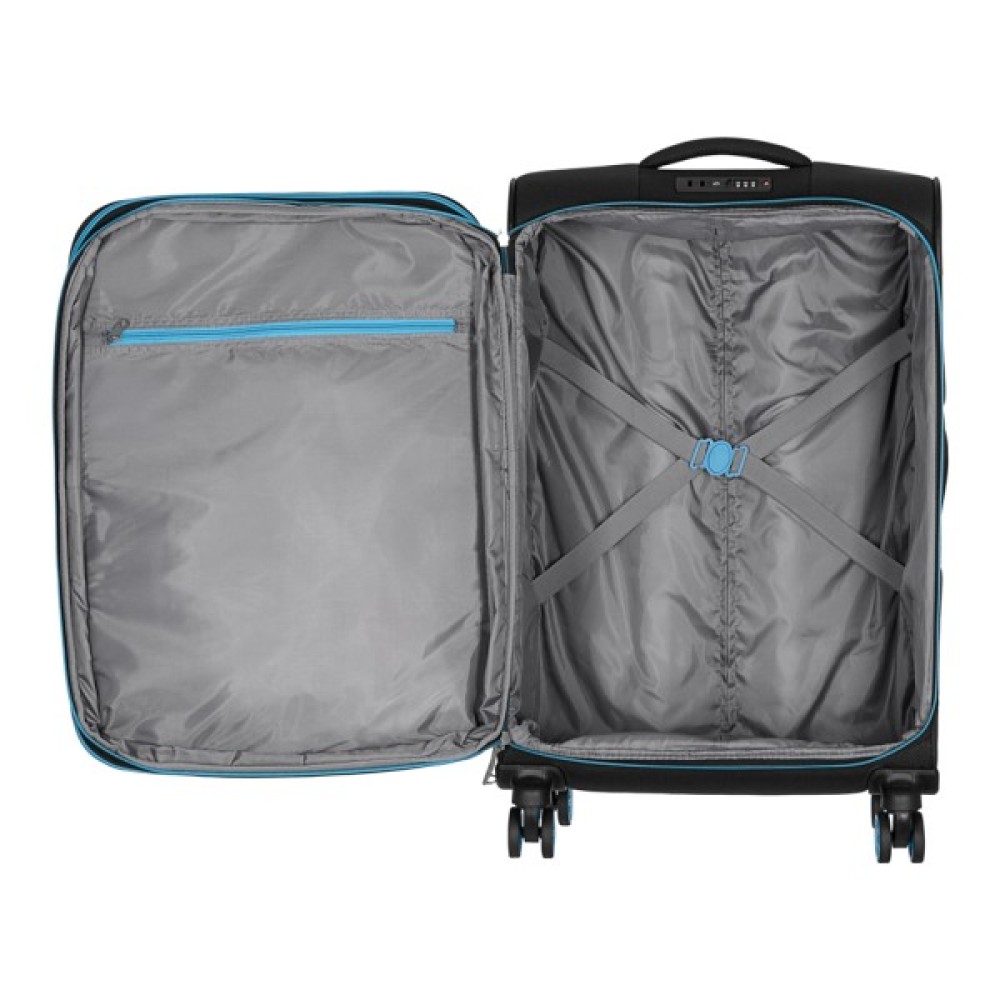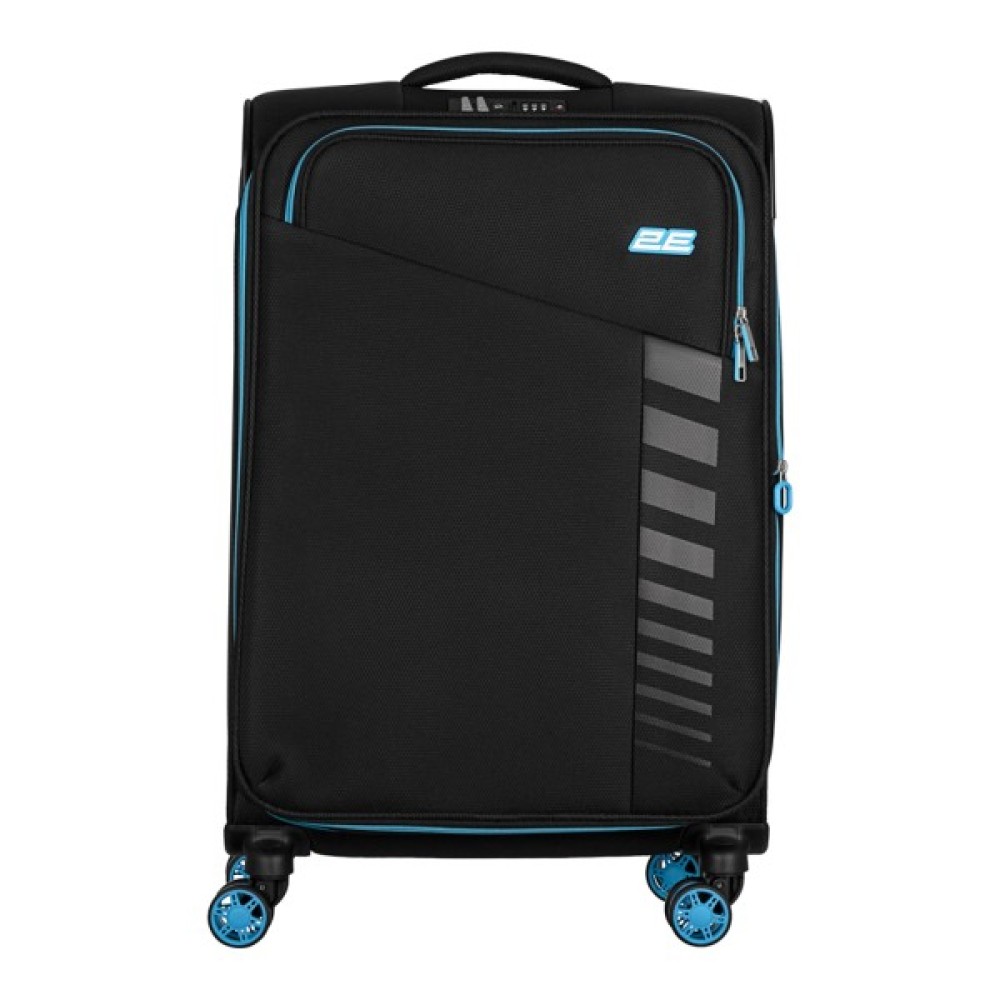Дорожня валіза 2E розміру M поєднує легкість, міцність і продуманий дизайн для комфортних подорожей. Жорсткий полегшений каркас вкрито зносостійкою поліестеровою тканиною із фактурним плетінням, що забезпечує привабливий вигляд і стійкість до пошкодження. Усередині є еластичні пакувальні ремені для надійної фіксації речей і додаткова кишеня на блискавці для дрібниць.