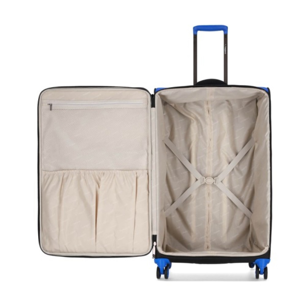 Stella L — чудовий варіант для мандрівок всією сім’єю. Валіза легко вміщує багаж кількох людей, а містке відділення допомагає раціонально розмістити речі завдяки ременям-фіксаторам, кишеням-органайзерам і відсіку для дрібниць. Вбудований кодовий замок надійно захищає вміст, додаючи спокою під час подорожей.