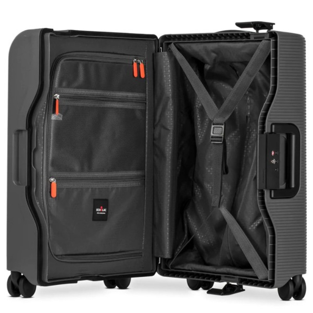Echolac FUSION (Dark Grey) на 38 літрів - маленька поліпропіленова валіза з інноваційною системою закриття, яка блокується TSA-замком. Варіант для короткострокових поїздок з невеликою кількістю речей на декілька днів.
