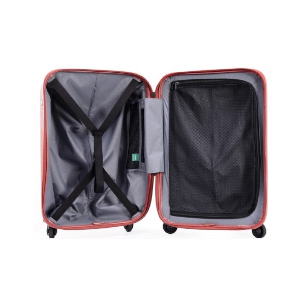 Валіза виготовлена із запатентованого поліпропіленового складу з матовою поверхнею «антиподряпини». 4-колісна система для легкої керованості: ролики плавно обертаються на 360 градусів, забезпечуючи плавне ковзання та маневреність навіть повністю заповненої валізи.