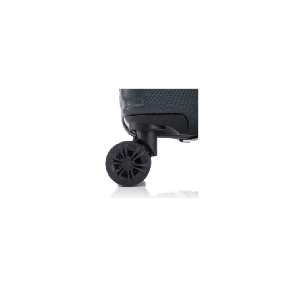 • Повноповоротні колеса - дана модель оснащена чотирма обертовими на 360 ° здвоєними колесами. Здвоєні колеса забезпечують кращий розподіл ваги та стійкість валізи, відмінне зчеплення, маневреність та мають більшу зносостійкість. Колеса кріпляться на 4 гвинти зсередини, що забезпечує максимальну стійкість при ударному навантаженні з будь-якого боку і дозволяє їх замінити у разі зносу.