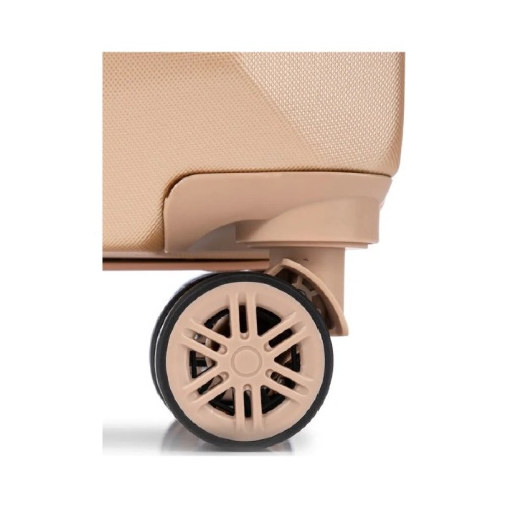 • Повноповоротні колеса - дана модель оснащена чотирма обертовими на 360° здвоєними колесами. Полегшені здвоєні колеса зі спицями забезпечують кращий розподіл ваги та стійкість валізи, відмінне зчеплення, маневреність та мають більшу зносостійкість. Колеса кріпляться на 4 гвинти зсередини, що забезпечує високу стійкість при ударному навантаженні з будь-якого боку і дозволяє їх замінити у разі зносу.