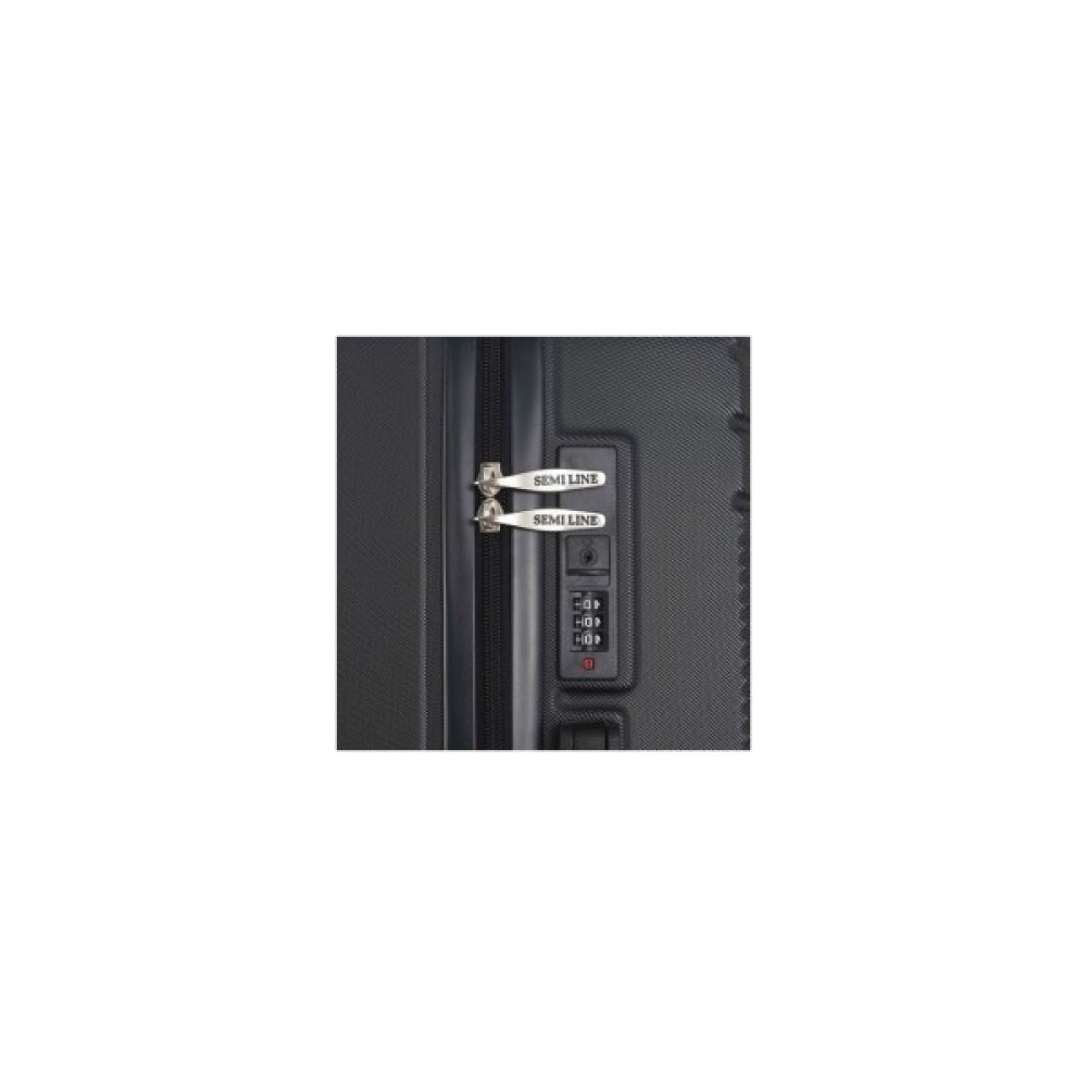 Валіза Semi Line T5789 має рельєфні лінії, що перетинають корпус з більш дрібним рифленим профілем під різними кутами. Завдяки цьому будь-які поверхневі пошкодження корпусу під час використання валізи будуть непомітними. Вона оснащена легкою алюмінієвою телескопічною ручкою, що фіксується в двох положеннях, а ручка для перенесення валізи має м'яку гелеву підкладку. "Утоплений" кодовий замок покликаний захистити вміст вашої валізи, а також не виступає над корпусом, отже його неможливо випадково пошкодити при транспортуванні валізи.