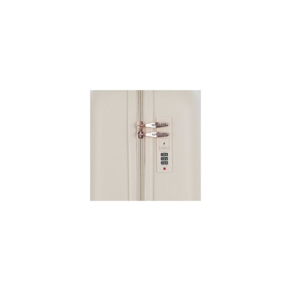 Одні з найлегших і найбільш надійних валіз Semi Line T5795 вироблені з поліпропілену - на сьогоднішній день найбільш оптимального матеріалу з точки зору поєднання міцності і ваги. При випадкових ударах корпус валізи лише прогинається, та приймає початкову форму після зняття навантаження. Валіза оснащена легкою алюмінієвою телескопічною ручкою. "Утоплений" кодовый замок не виступає за площину корпусу, отже його практично неможливо пошкодити, а він в свою чергу покликаний захистити вміст вашої валізи. Чергування матових і глянцевих смуг створює неперевершений візуальний ефект.
