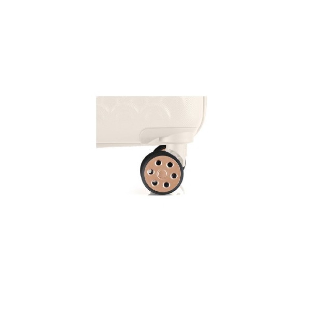 • Подвійні колеса - дана модель оснащена чотирма обертовими на 360 ° здвоєними колесами. Здвоєні колеса забезпечують кращий розподіл ваги та стійкість валізи, відмінне зчеплення, маневреність та мають більшу зносостійкість. Колеса кріпляться гвинтами зсередини, що дозволяє їх замінити у разі зносу.