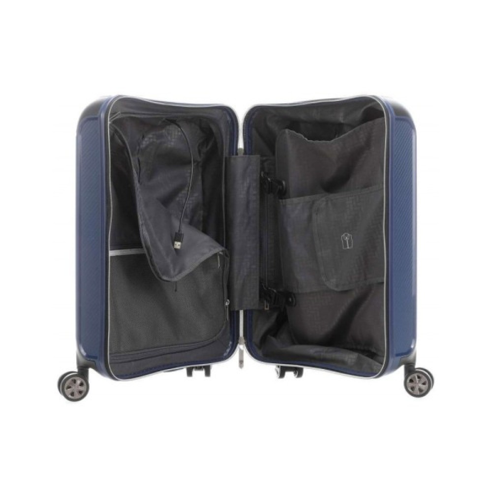 Маленька і компактна валіза. Гарний вибір для короткострокової поїздки. Презентабельний дизайн, фактурна матова поверхня й елегантний синій колір. Бічні торці зміцнені пластиковими накладками. На верхній частині розташована ручка для перенесення і висувна телескопічна. Чотири здвоєні колеса забезпечують ідеальну прохідність і повороткість, досить безшумні. Внутрішній інтер'єр зроблений у стриманому стилі, має два автономні відділення з відсіками та кишеньками. Матеріал корпусу — поліпропілен, міцний, безпечний і зносостійкий. TSA- замок із кодовим блокуванням допоможе захистити ваші речі, а вбудований usb залишатися мобільними.