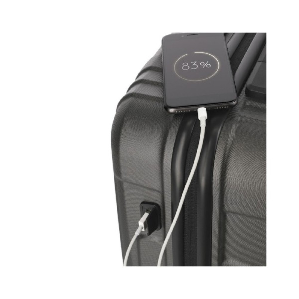 З такою валізою можна вирушати в найсміливіші подорожі. Полікарбонат має підвищену зносостійкість і довговічність. Оболонка поєднує в собі твердість і гнучкість, що сприяє схоронність форми від виникнення деформацій, тріщин і різного роду пошкоджень. Валіза оснащена кодовим замком блокування TSA з відбитком пальця.