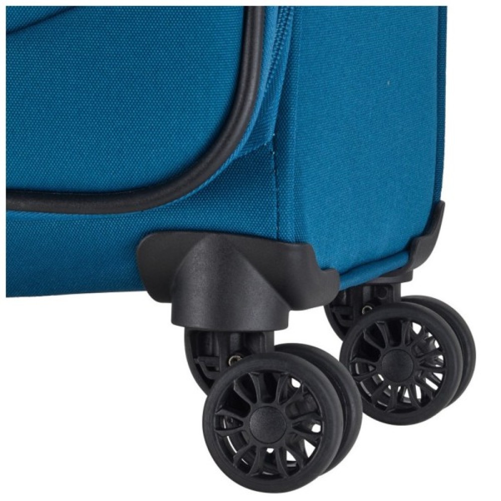 ✔ 4 колеса з подвійними роликами – стійкість та легке розвертання валізи на одному місці.