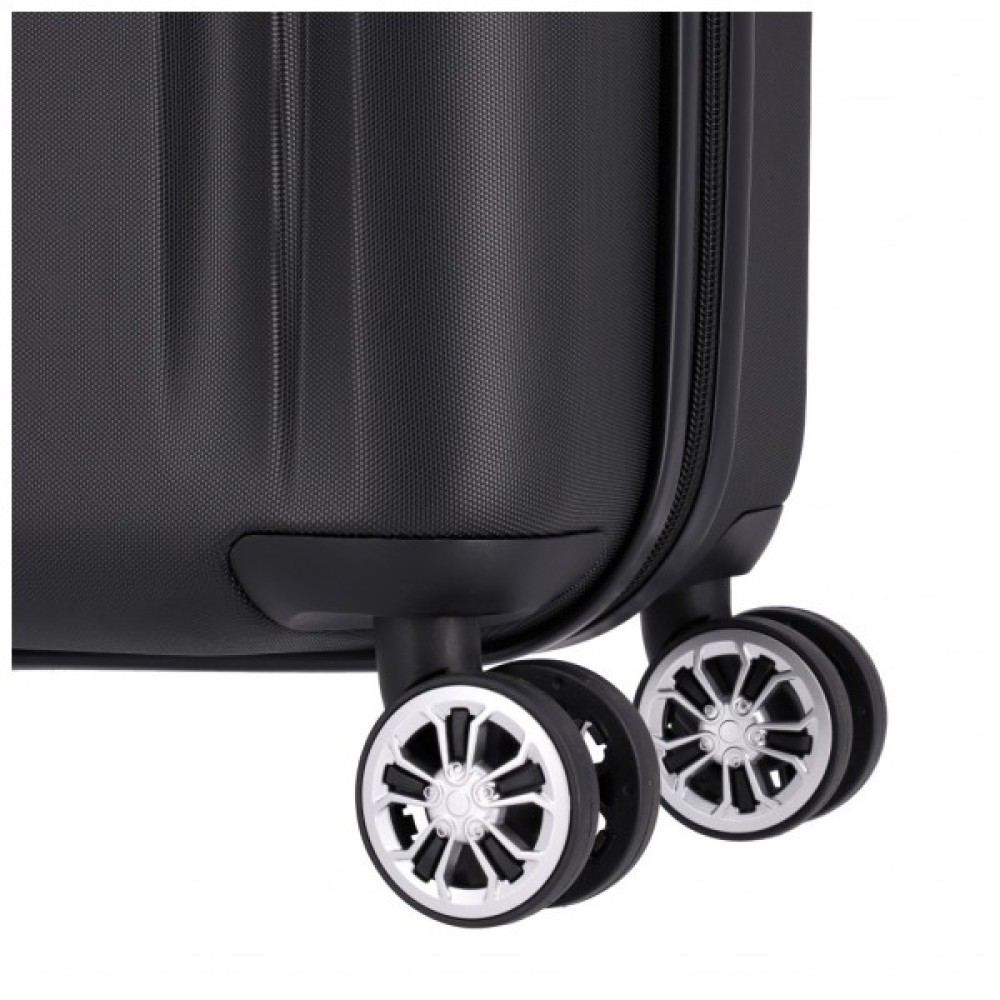 ABS пластик - оболонка жорстка і ударостійка. Валіза водонепроникна, стійка до абразивного зносу.