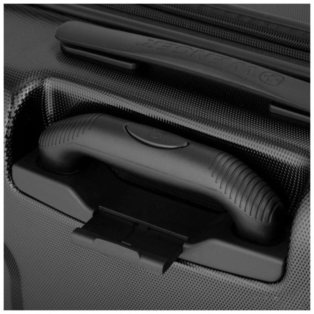 Супер-тихі здвоєні колеса, плавно ковзають по покриттю як в аеропортах, так і за їх межами. Маневровість по вузьких проходах і між рядів не причинять клопоту, а його стильна і приваблива зовнішність, дозволить відшукати саме вашу валізу серед інших А якщо вам потрібно упакувати більше речей, до ваших послуг можливість збільшення об'єму трохи більше 10 літрів.