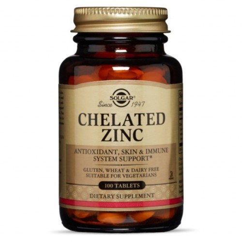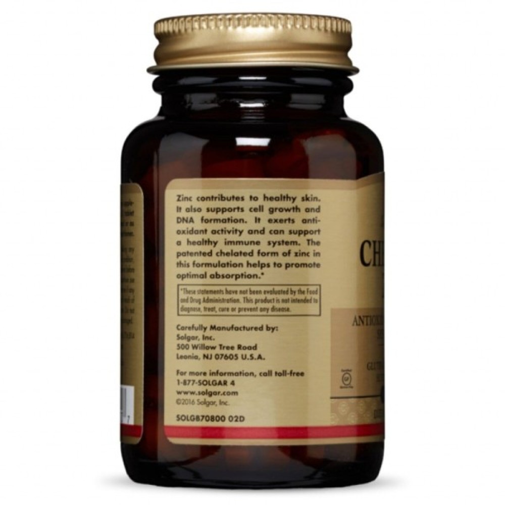 Мінерали Solgar Цинк хелат, Chelated Zinc, 100 таблеток (SOL00800)
