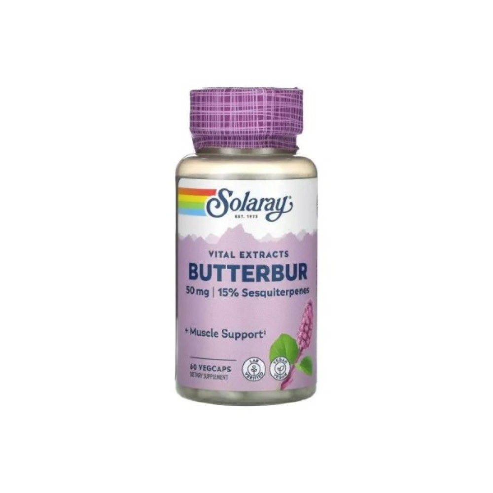 Трави Solaray Екстракт кореня білокопитника, 50 мг, Butterbur, 60 вегетаріан. (SOR-11664)