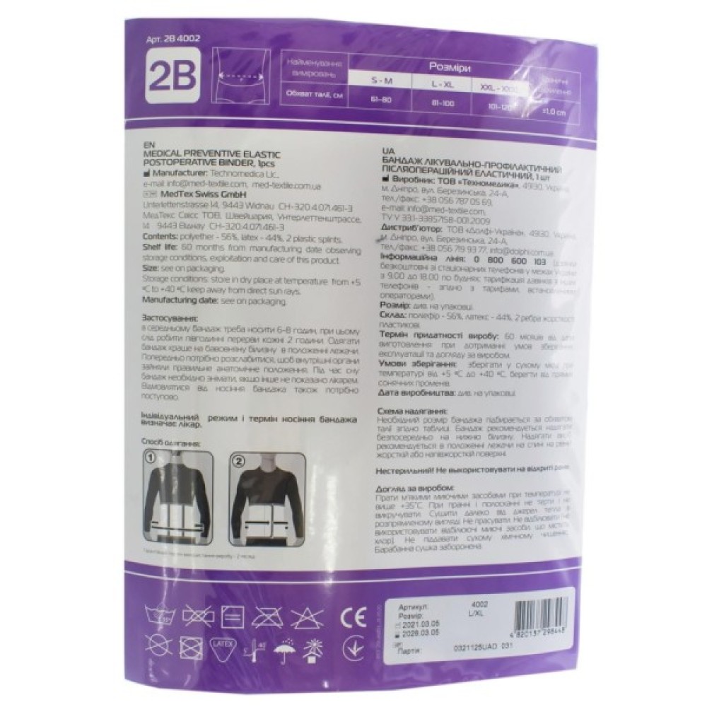 Бандаж, 2B, Бандаж, лікувальнопрофілактичний, еластичний, , розмі, 4820137298448